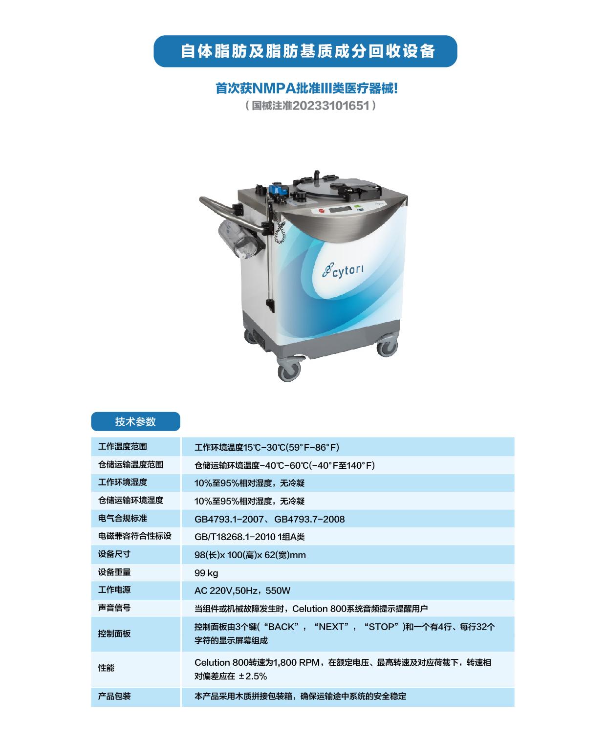 Celution®️ 800自体脂肪及脂肪基质成分回收设备(下称Celution®️ 800设备)可以为医院临床科室提供脂肪基质成分(ADRCs)最简单可靠的提取方式: